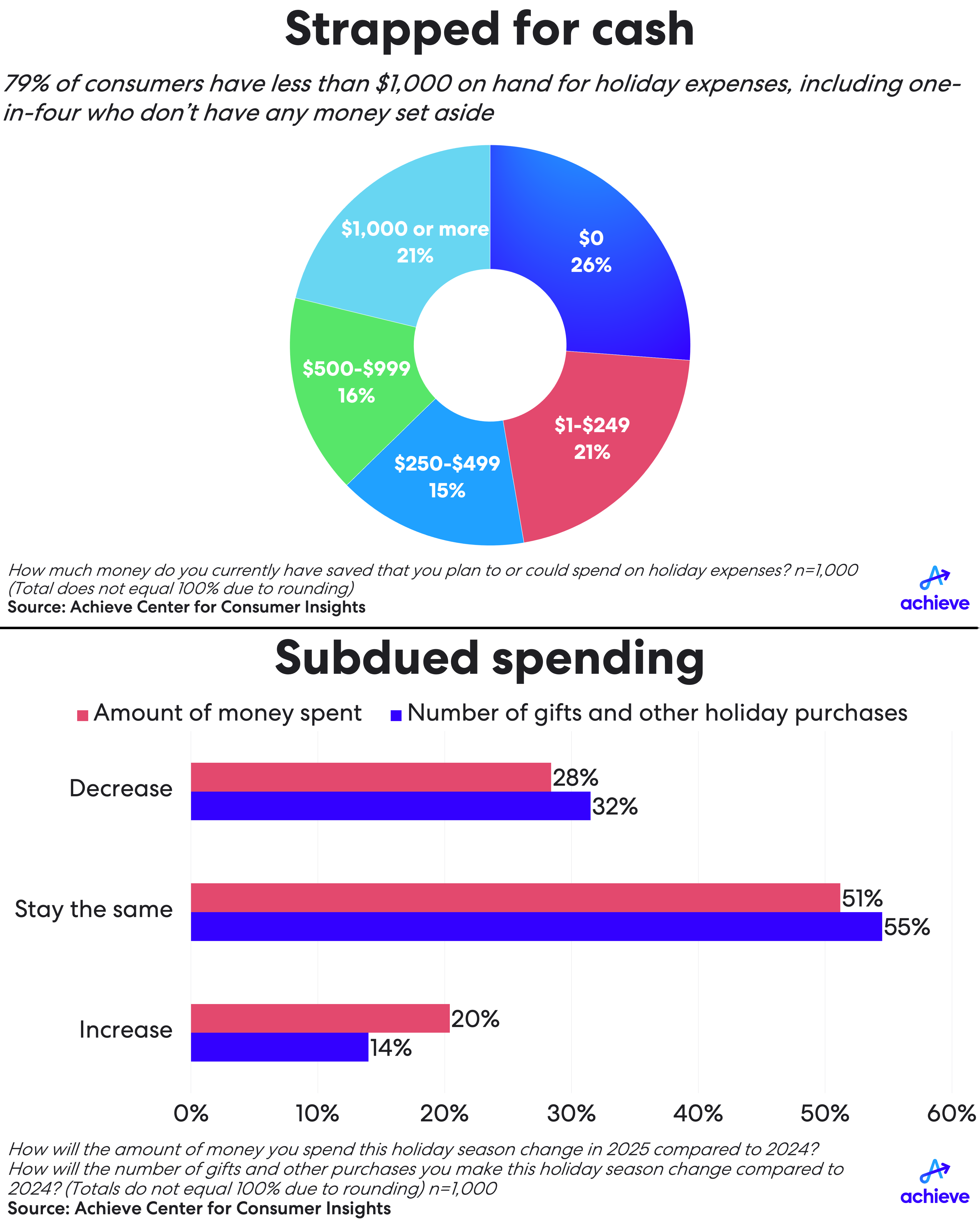 79% of Americans have less than $1,000 to spend on the 2025 holiday season, Achieve survey finds